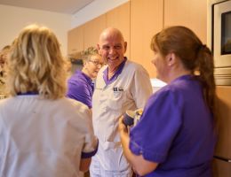 Ik heb ook gezien hoe veel vrouwen naast hun werk ook nog een heel huishouden, kinderen, schoolactiviteiten en soms mantelzorg weten te combineren. Daar neem ik mijn pet voor af. Met mijn collega’s heb ik vooral altijd veel plezier. En ik heb op mijn werk zelfs mijn vrouw leren kennen!” Bert vindt het bijzonder om zo’n jubileum in de zorg te kunnen vieren. “Ik ben dankbaar dat ik dit werk al zo lang mag doen. De viering op het werk, met bloemen, kaartjes, taart en veel collega’s die me kwamen feliciteren: dat raakte me echt.”